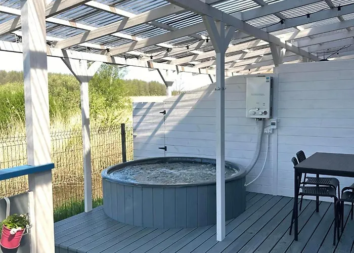Kolorowy Kopan Domki Caloroczne Prywatna Z Balia W Tarasie je situována 10 minut jízdy od Rejs Statkiem KROL ERYK I, obsahuje horkou lázeň, akvapark a rovnou střechu k opalování. Ubytování je také 3 km od Darlowo.